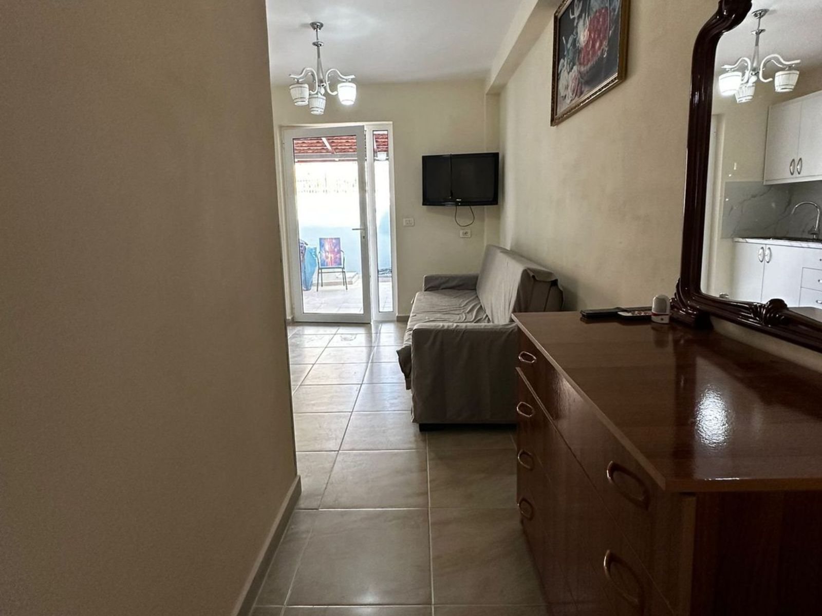 Our cozy studio apartment offers a comfortable living space with a kitchenette, modern bathroom, and sea views. Perfect for couples or solo travelers, it features air conditioning, smart TV, and all necessary amenities for a comfortable stay in Sarande.