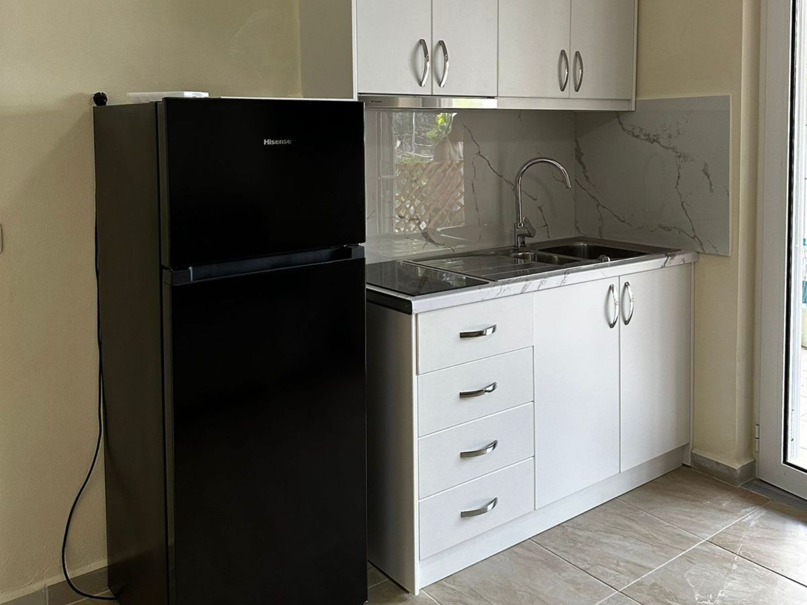 Our cozy studio apartment offers a comfortable living space with a kitchenette, modern bathroom, and sea views. Perfect for couples or solo travelers, it features air conditioning, smart TV, and all necessary amenities for a comfortable stay in Sarande.